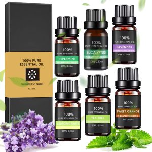 بايسكي مجموعة زيوت عطرية نقية 100% من الدرجة العلاجية – افضل 6 زيوت للعلاج بالروائح العلاجية – 6 عبوات، 10 مل، هدية عيد الحب للنساء والفتيات