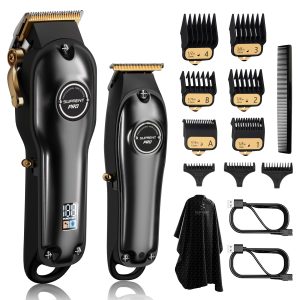سوبرينت® ماكينة حلاقة شعر احترافية للرجال، مجموعة قص الشعر وشفرة على شكل حرف T بدون فجوة، مجموعة ماكينة حلاقة لاسلكية مع شاشة LED لهدايا الرجال (اسود)