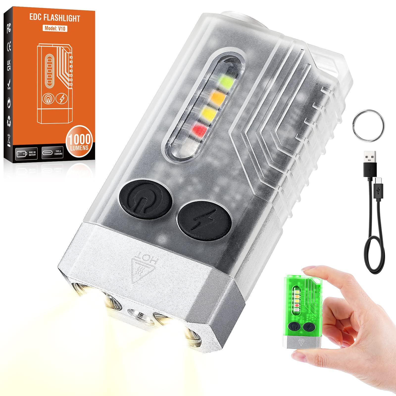 ميكنج تيك مصباح يدوي صغير LED بسلسلة مفاتيح، مصباح جيب قابل لاعادة الشحن مع 14 وضع 1000 لومن، مصباح يدوي قوي صغير اي دي سي شفاف IPX4 مع ضوء الاشعة فوق البنفسجية وذيل مغناطيسي للتخييم والمشي لمسافات
