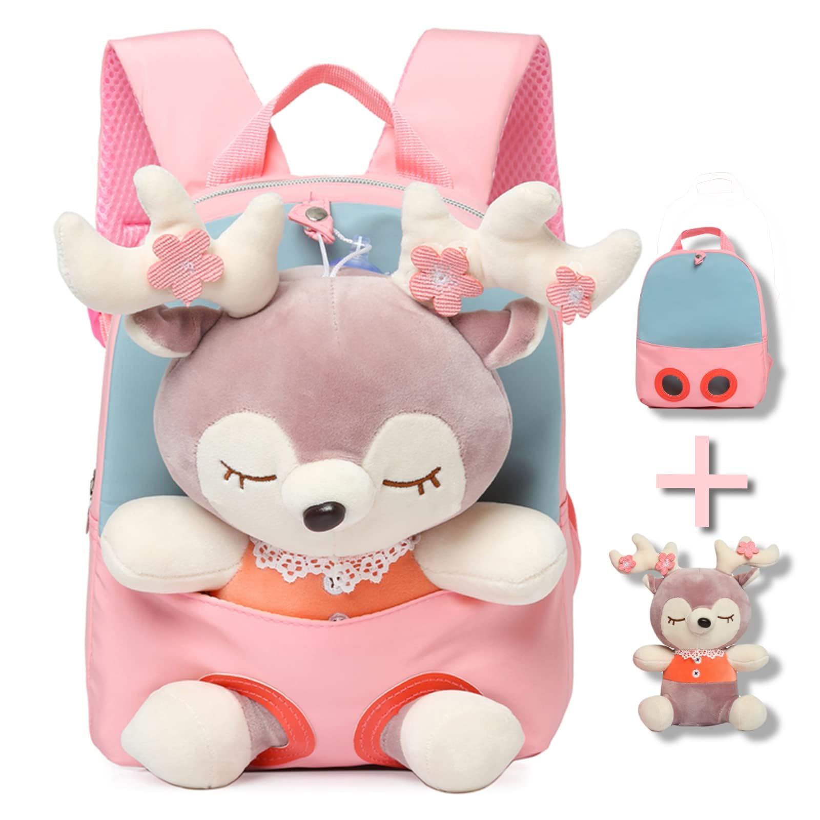TERRIFI Little Doll Stuffed Animal kids Plush Backpack, Lovely Toddler Backpack, Cartoon Preschool Purse for Kids, Suitable for 2-6 Years Girl Boy (Pink)