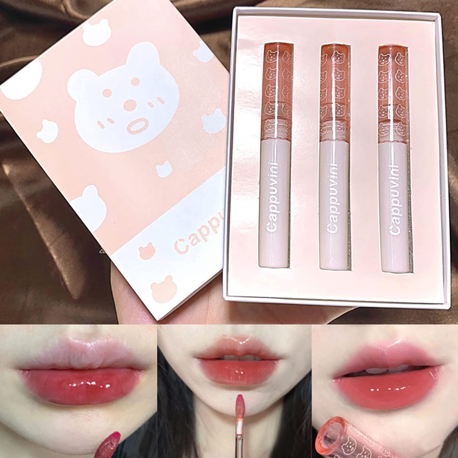 VUCATIN 3PCS Liquid Lip Gloss, Water Shimmery Women Lip Glosses, Glaze Glass Gloss Lip, Moisturizing, Long Lasting, Daily Makeup Lip Care Tinting for Girls Day Use, Best Gift (A)