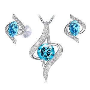 مجموعة اطقم راقية مكونة من قلادة بدلاية واقراط صغيرة مصنوعة من الفضة الاسترليني 925 بطلاء ذهبي عيار 18 ومرصعة بكريستال سواروفسكي للنساء والبنات ومناسبة كهدية من جيه.روزيه
