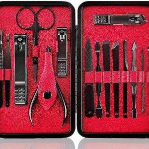 مجموعة تقليم اظافر من 15 قطعة في مجموعة واحدة، مثالية للعناية بالمظهر الخارجي للاظافر وتنظيفها، للرجال والنساء، مجموعة عناية مثالية للجسم والاظافر في المنزل او عند السفر، لون احمر واسود 11× 7× 2 سم