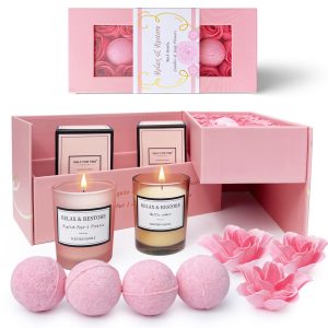 مجموعة شموع معطرة وكرات استحمام فوارة من امباير للنساء، هدايا عيد ميلاد للنساء، مجموعة هدايا لها من 20 قطعة، هدية عيد ميلاد للنساء مع زهور صابون برائحة الورد