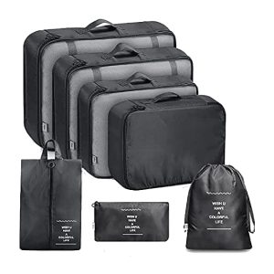 مجموعة من 7 قطع من منظم حقائب السفر وحقائب التخزين وحقائب الغسيل المقاومة للماء ملحقات السفر