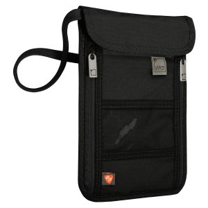 محفظة وحقيبة سفر وحامل جواز سفر تعلق حول الرقبة وذات بطانة بميزة حجب تقنية تحديد الهوية بموجات الراديو للجنسين من لويس ان.كلارك، 1 قطعة