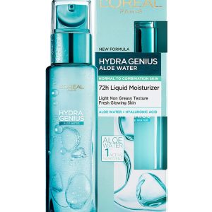 مرطب سائل هيدرا جينيوس بخلاصة ماء الالوفيرا وحمض الهيالورونيك من لوريال باريس، يرطب البشرة لمدة 72 ساعة، 70 مل